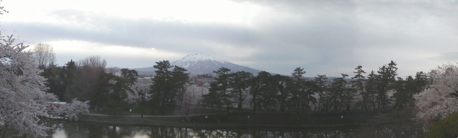 H16.4.21夕刻撮影 弘前公園から見た岩木山の眺望、丁度夕日が沈むところ。